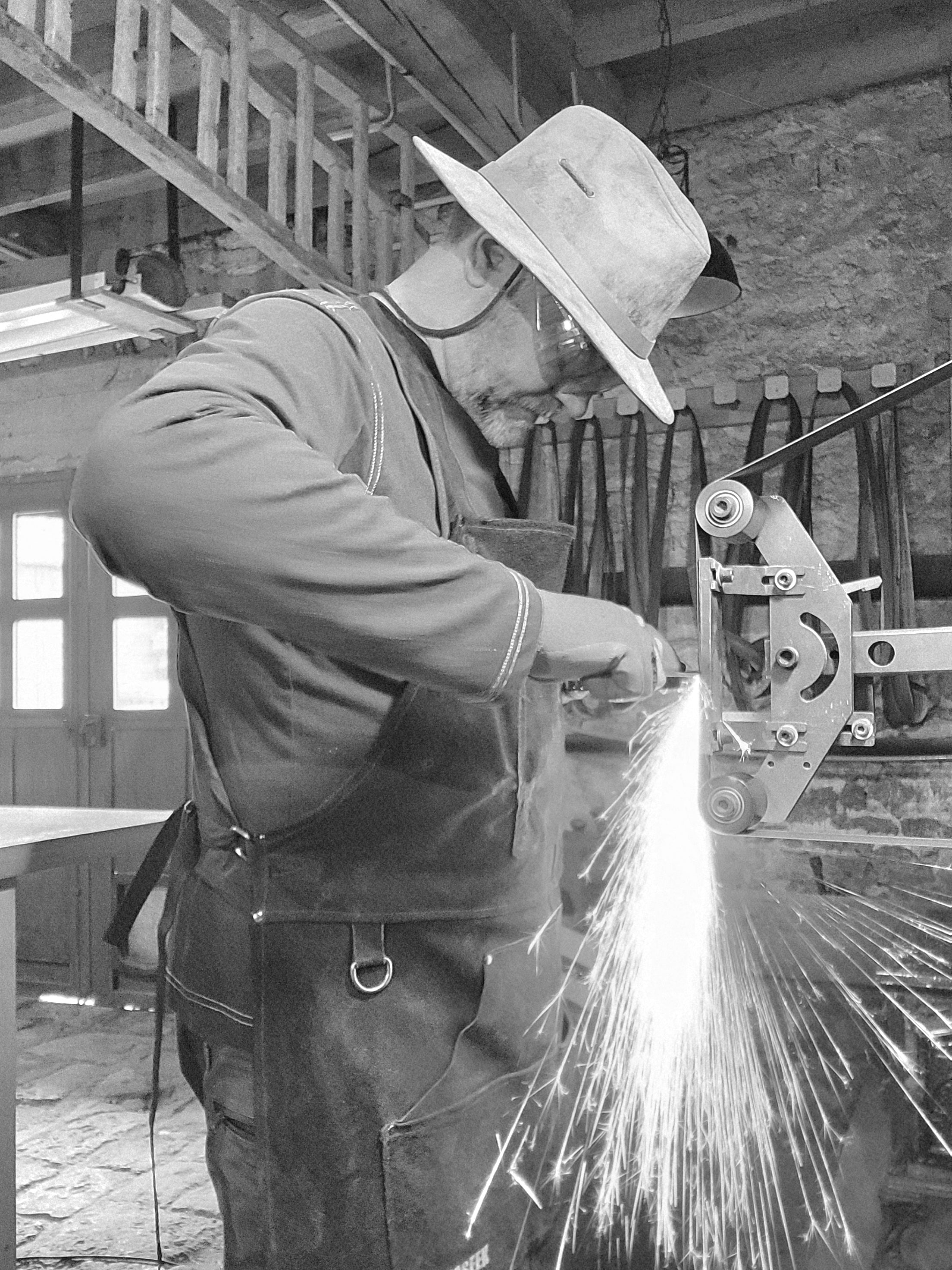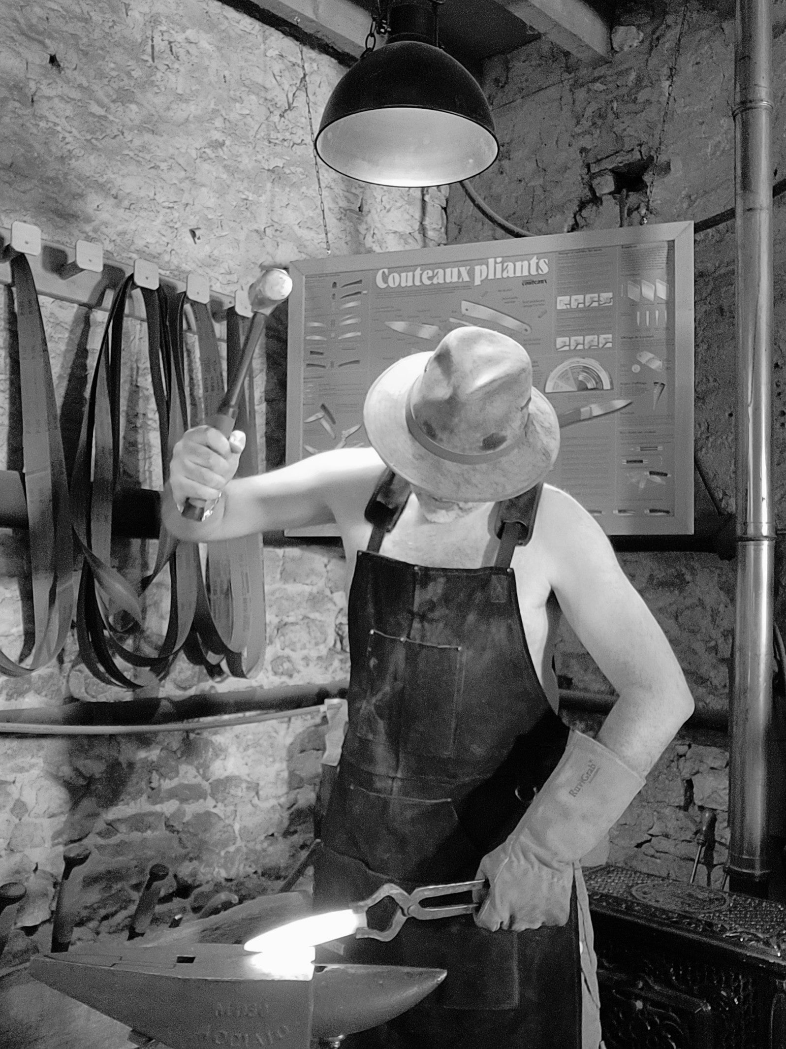 Plus de 30 ans d’expérience dans la transformation du bois et de ses dérivés, une reconversion passionnée dans la forge, et une formation auprès de maîtres couteliers.