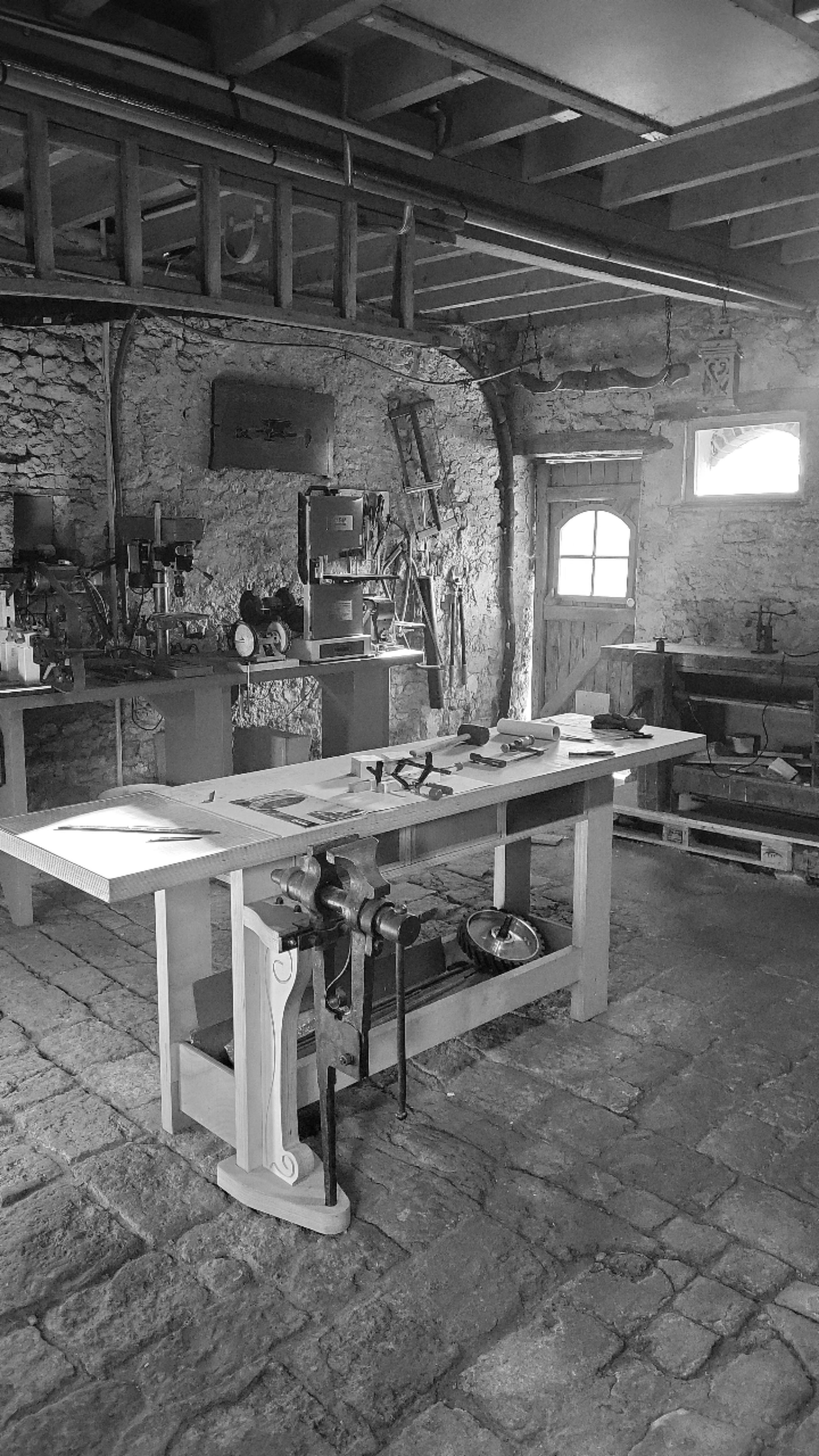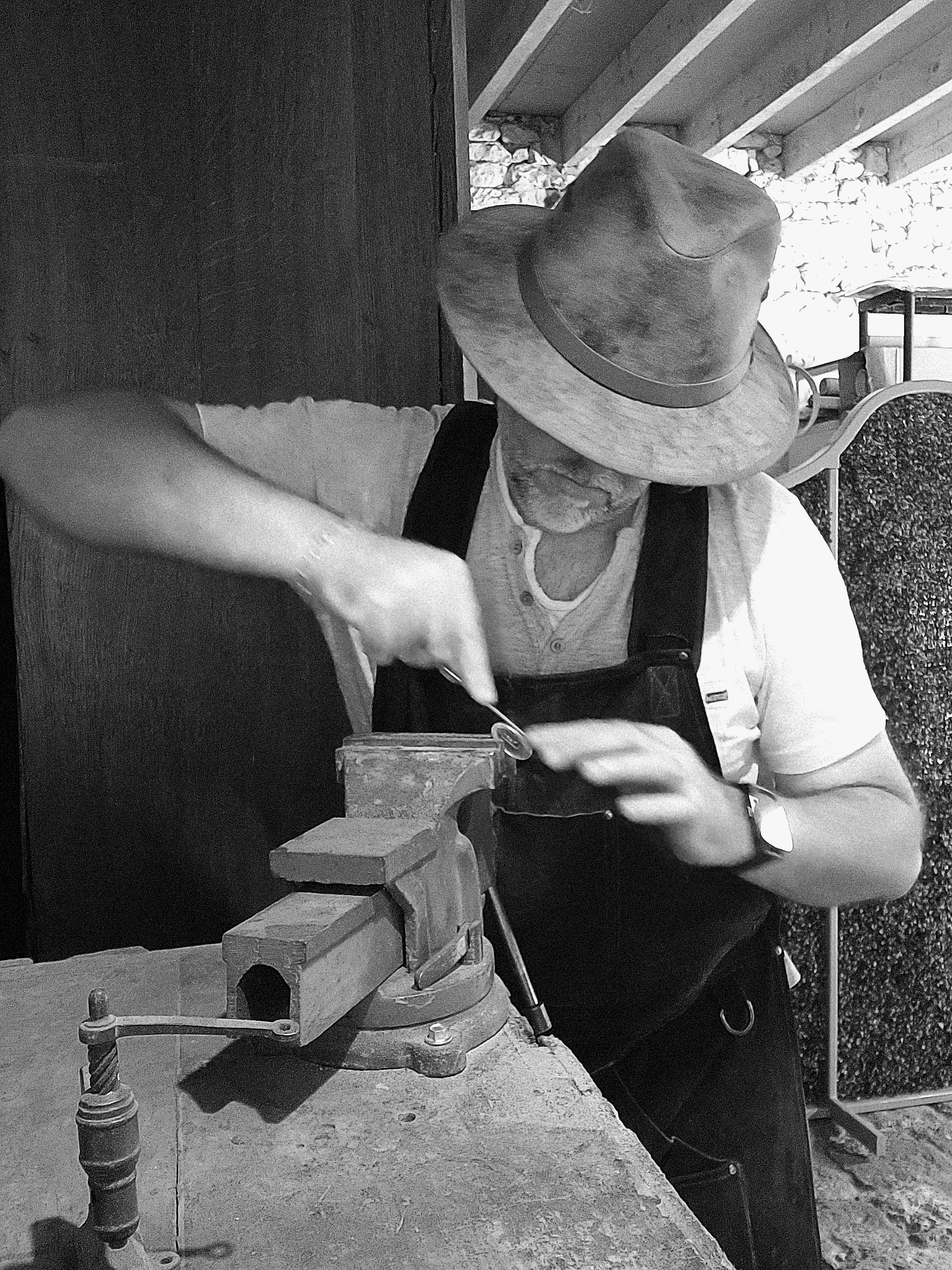 Chaque couteau est forgé à la main, dans un atelier au charme préservé, avec un profond respect pour les matériaux et les gestes du métier.